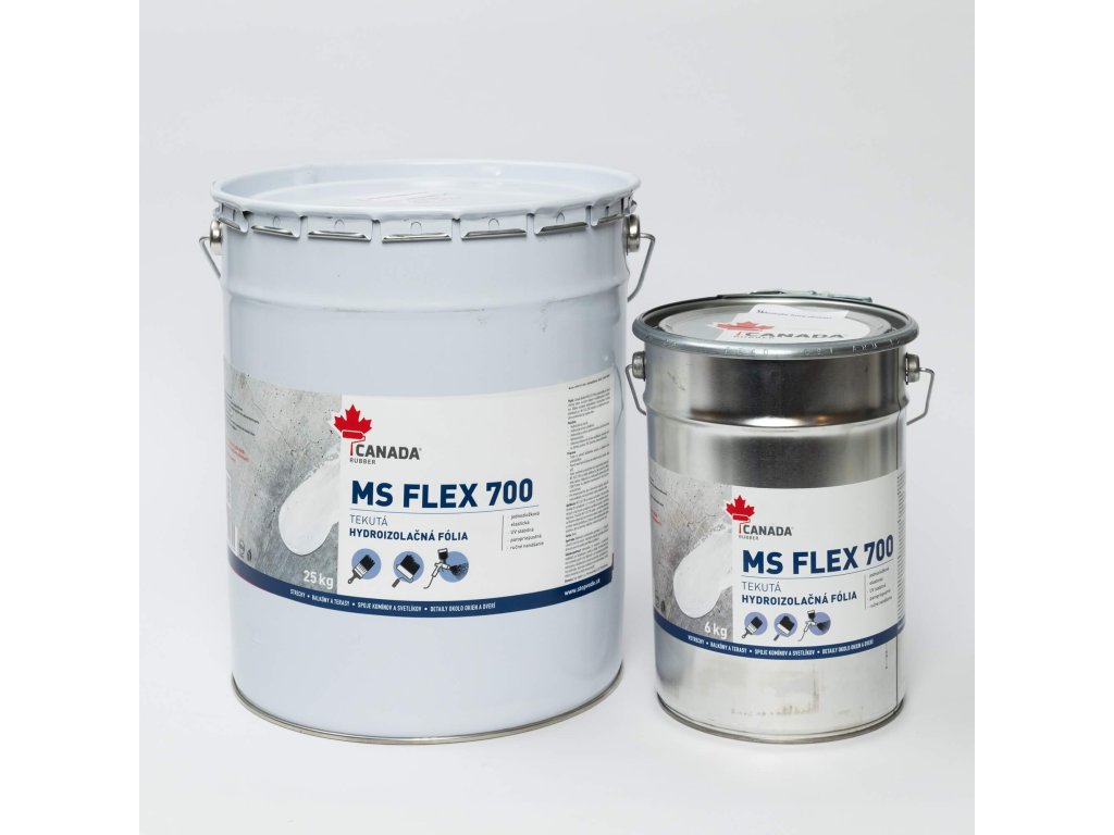 Všeobecne sa používa na povrchovú hydroizoláciu. Vďaka vysokému hydrofóbnemu výkonu vytvrdnutej membrány je Canada Rubber MS FLEX 700 vhodný na hydroizoláciu povrchov so stojatou vodou - striech, terás, kvetinových záhonov, striech s polyuretánovou izolačnou penou atď. Materiál môže priľnúť aj na vlhké podklady bez použitia základného náteru.