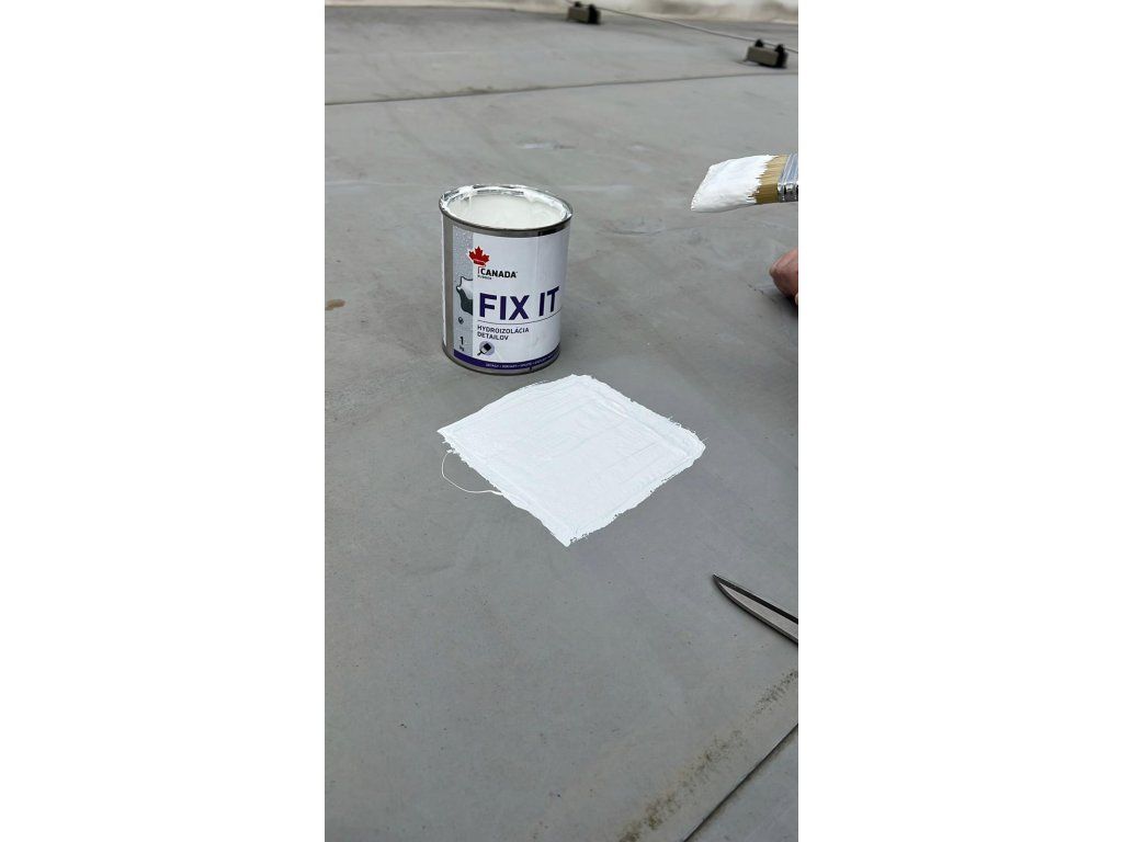 FIX IT je hydroizolačná jednozložková membrána s vysokou tixotropiou a elasticitou. Polymerizuje vlhkosťou prostredia, vytvára membránu bez bublín. Je určená na dlhodobú hydroizoláciu striech, terás a podlahových spojov, ako aj na kritické časti, ktoré by mali byť detailne ochránené. Jeho unikátne zloženie je elastomérne a hydrofóbne ako polyuretánová živica. Pri aplikácii vytvára jedinečnú, bezspojovú, elastickú, vodoodolnú, paropriepustnú membránu, ktorá predstavuje dokonalú priľnavosť na všetky povrchy, ako napr. dlaždice, kov, drevo, betón, cementové malty atď., ako aj na väčšine hydroizolačných povrchov.