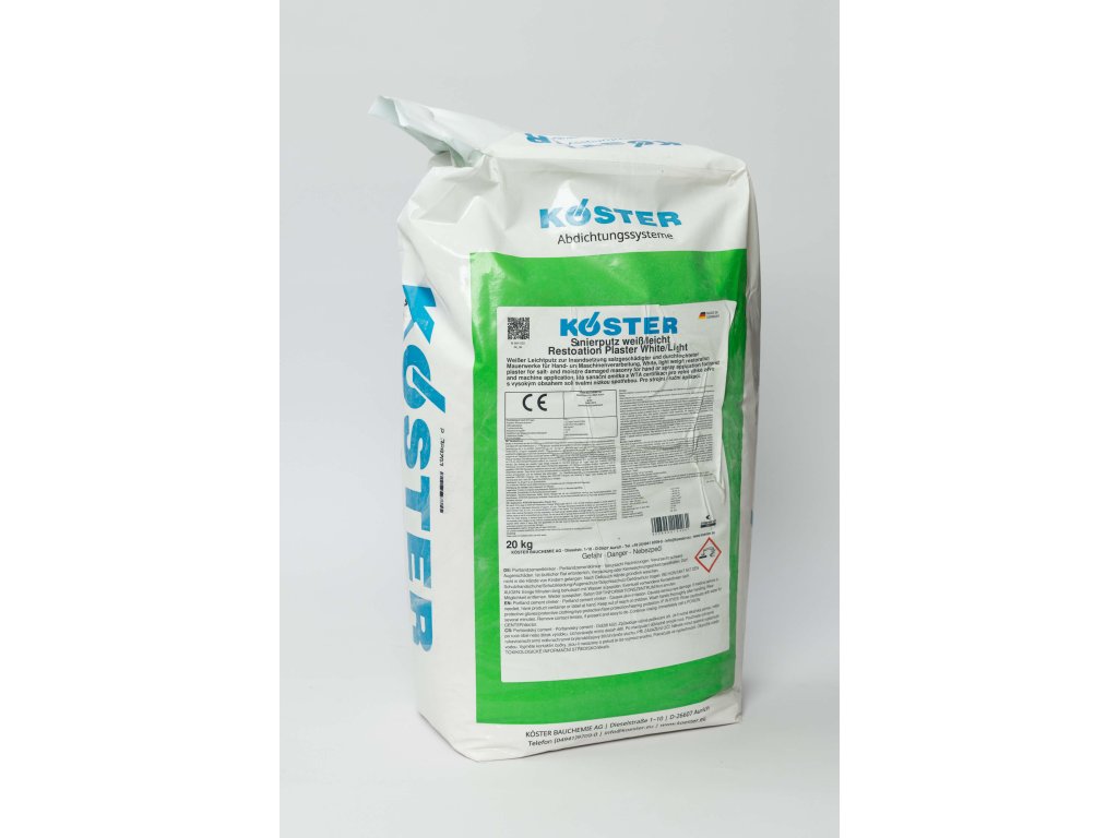 KÖSTER Restoration Plaster White/Light je biela sanačná omietka určená na obnovu podkladov s vysokou vlhkosťou a zasolením. Vzhľadom na vysokú pórovitosť a hydrofóbnosť, KÖSTER Restoration Plaster White/Light umožňuje bezproblémové sušenie a odsolenie muriva aj v prípade vysokého obsahu soli.